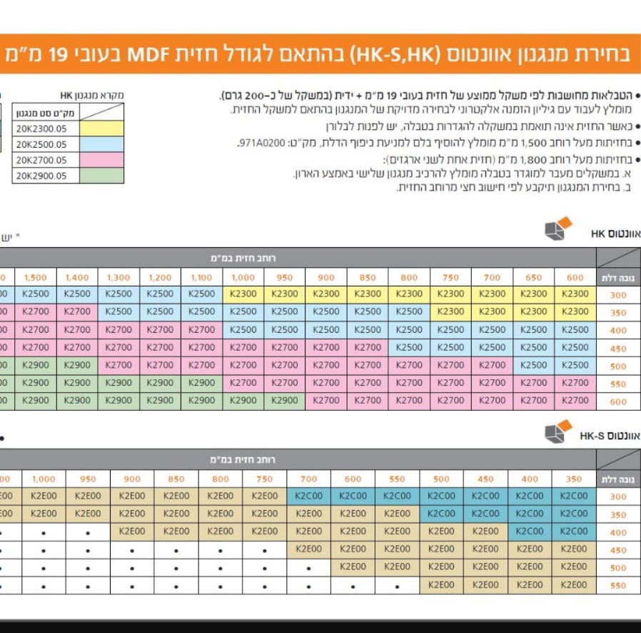 בוכנות ומנגנוני הרמה לדלת קלפה למטבח